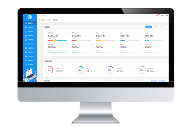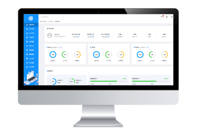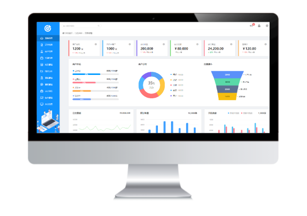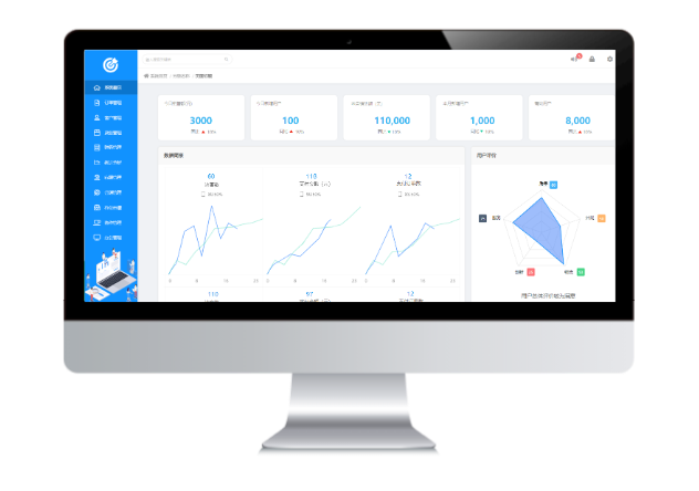 统计系统运营数据,包括用户数量、商品销售额和订单完成率等。
